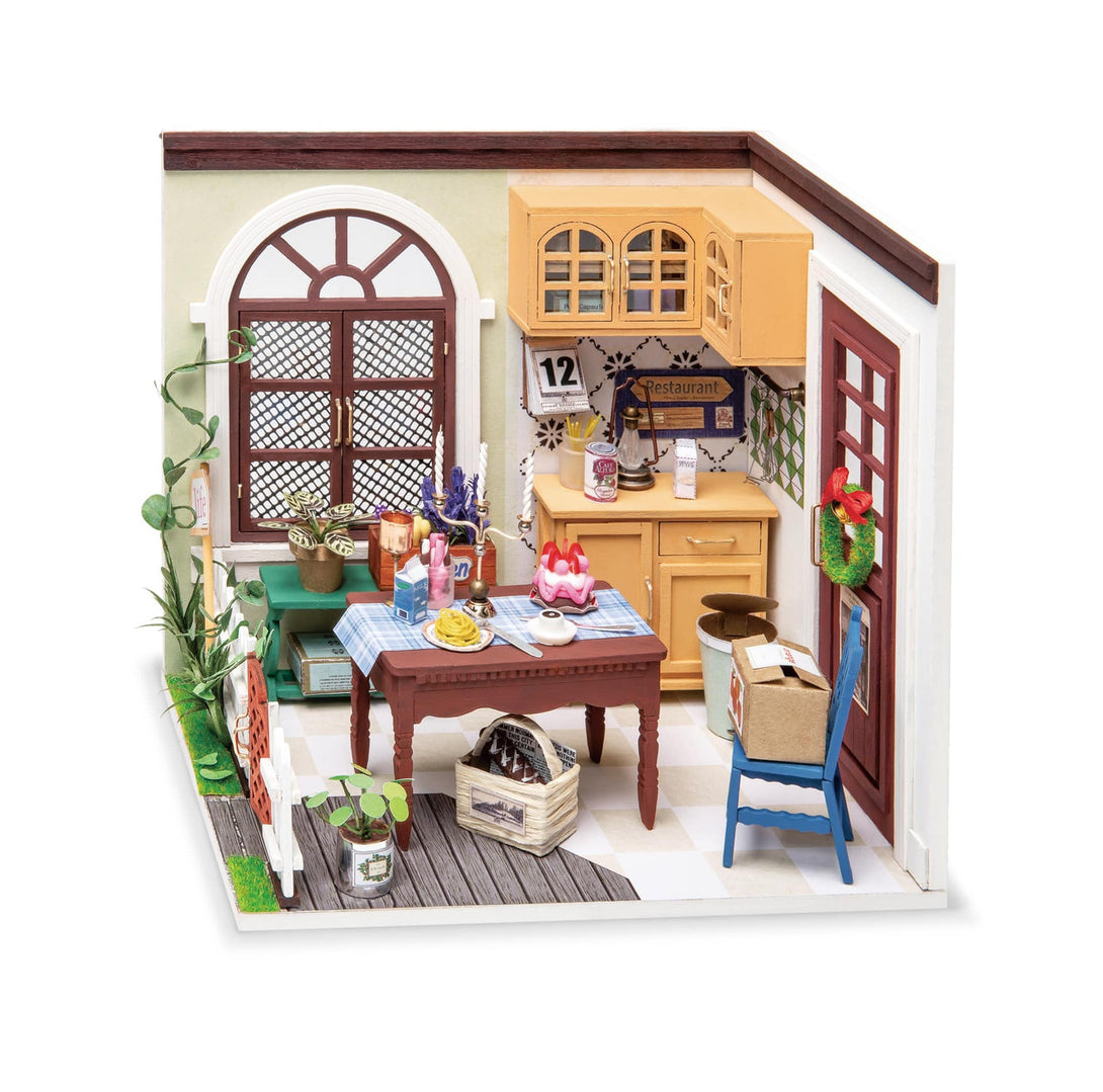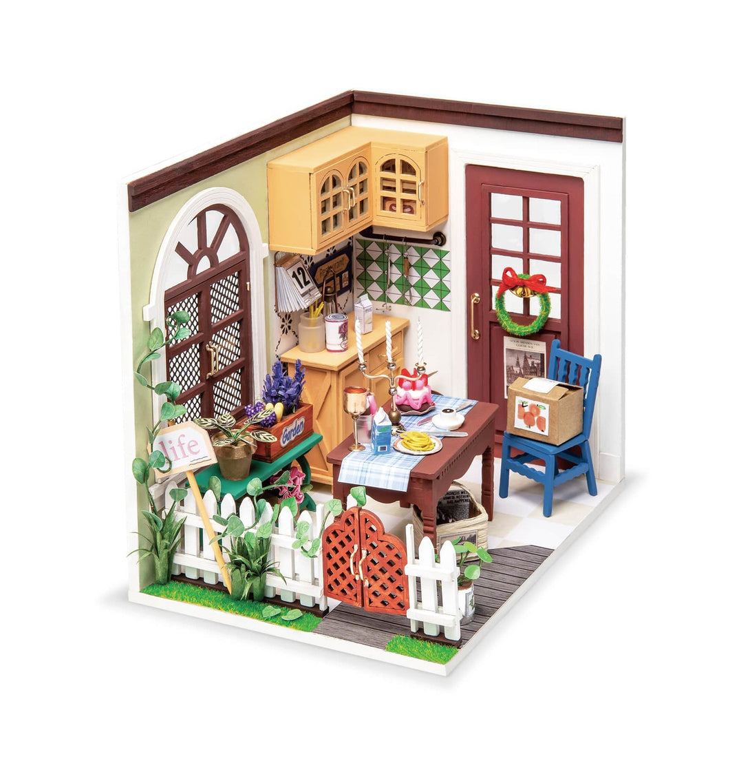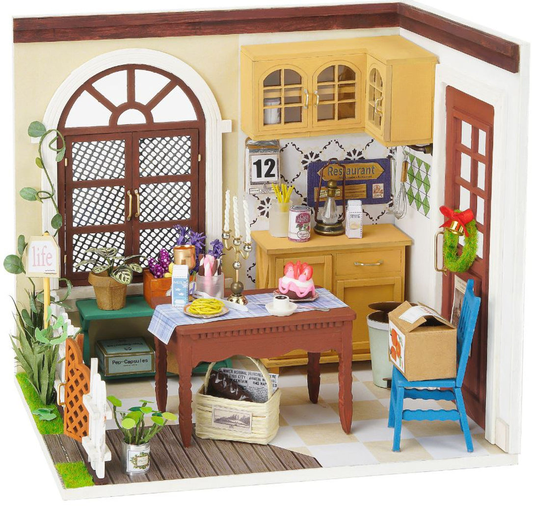 Our DIY mini dollhouse is very well made, using a miniature scale of about 1:24. All pieces are in separate bags and a colourful step by step instruction book is included, which is a joy to read and very clear. The materials in the kit are eco-friendly, have no burrs. The paint is odorless and can also be easily washed out by water