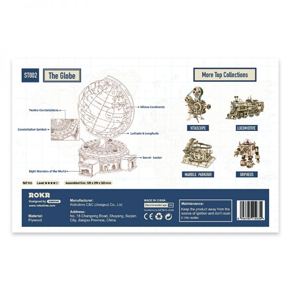Embark on a journey of creativity and learning with ROKR The Globe, a beautifully designed classic-style globe model that combines elegance, functionality, and challenge. This intricate DIY project offers a stunning representation of the Earth with a retro European aesthetic, featuring 8 world wonders, a 23.5° tilted axis, and 3D map details.