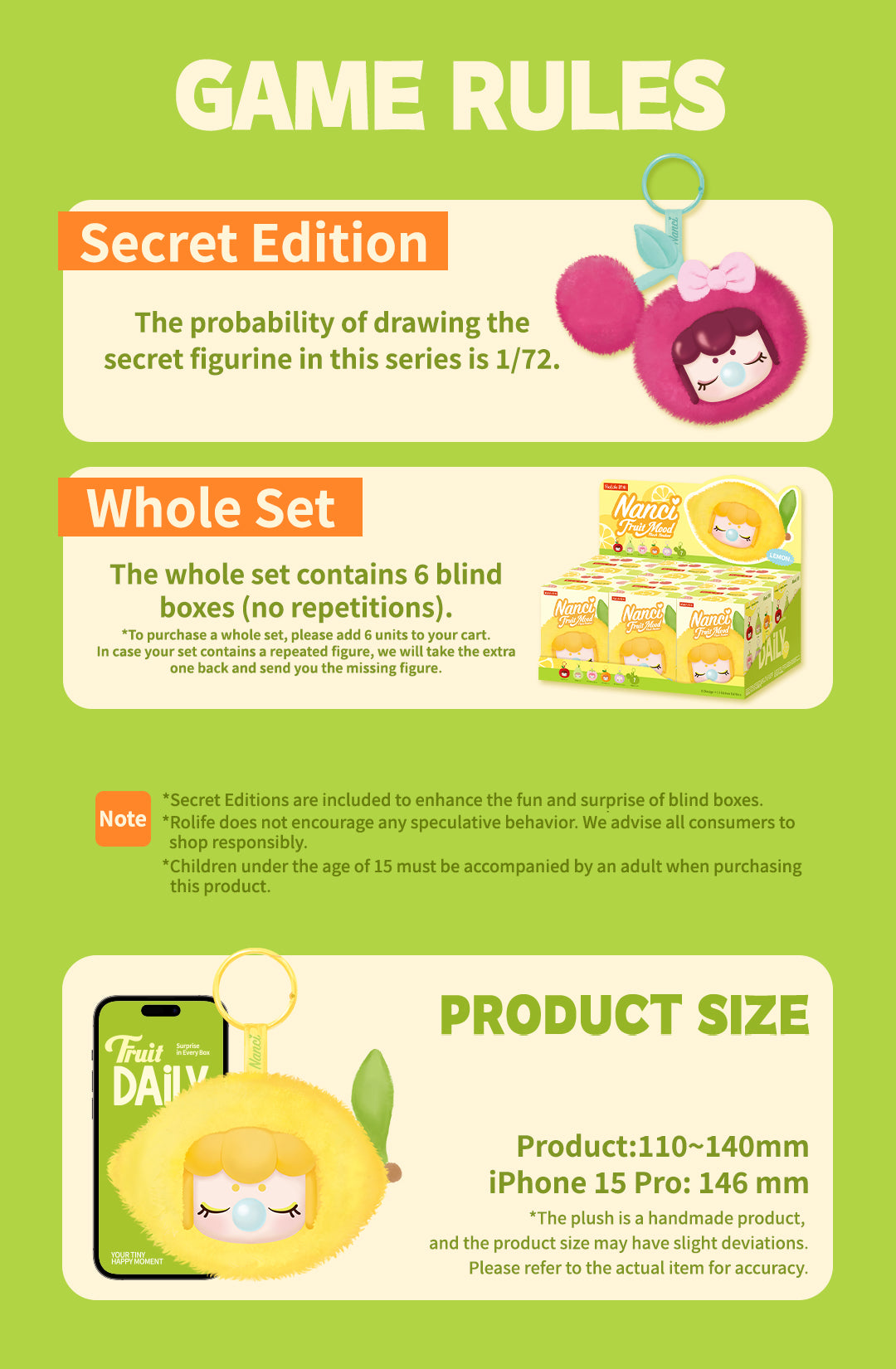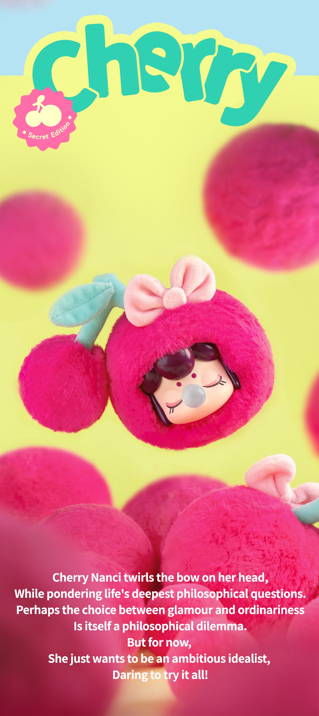 Unbox Rolife Nanci Fruit Mood Plush blind box—6 colorful fruit characters plus a rare Cherry hidden edition (1:72), each bursting with personality to brighten your day and awaken your playful side.